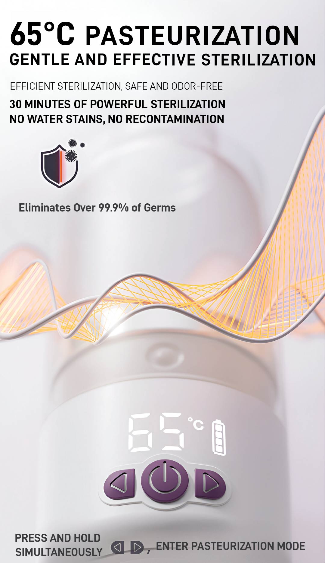 - Pasteurization Mode (65°C) – Gentle sterilization that kills 99.9% of bacteria.